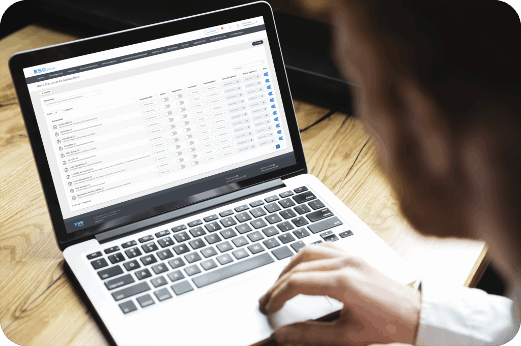 Gere relatórios alinhados a padrões como GRI, SASB, IFRS S1/S2 e ISE, com possibilidade de auditoria de dados diretamente pelo sistema.