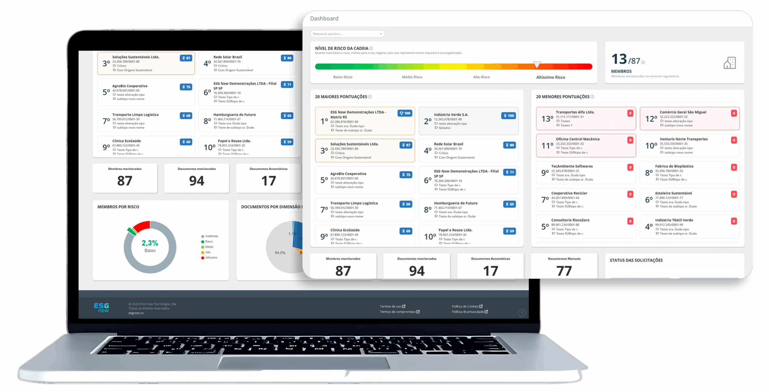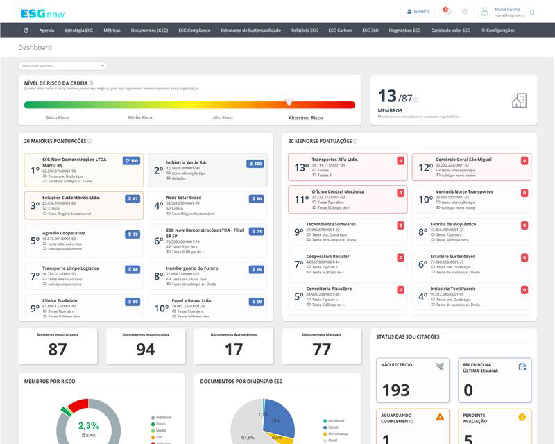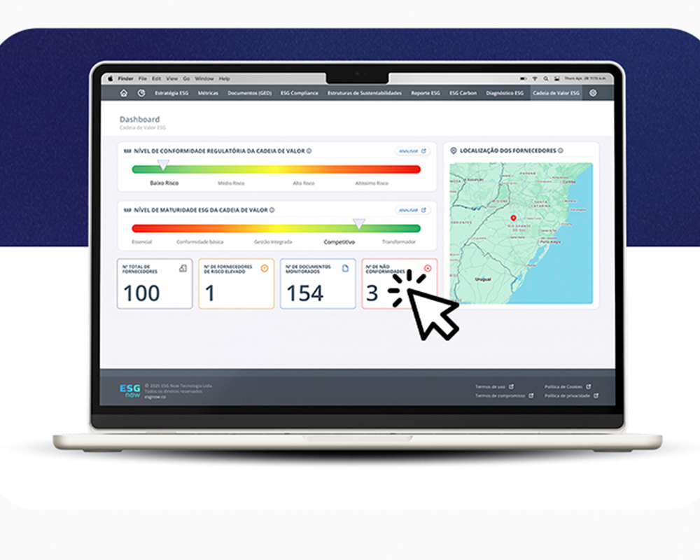 O Módulo Cadeia de Valor vai além do monitoramento de documentos. Ele consolida informações, avalia riscos, engaja parceiros e acelera a maturidade ESG da sua empresa.